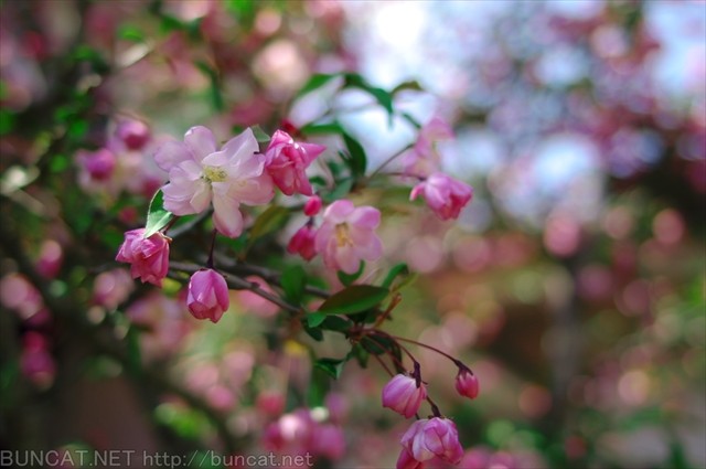 AのレンズとBのレンズで同じ花海棠を撮りました。