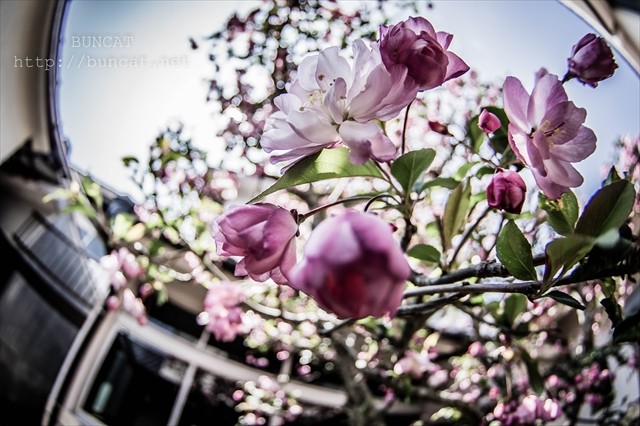 PHOTOGRAPHY花海棠は蕾を下に向けて、イヤリングのように、サクランボのように咲くので、あおりで撮るしかない。